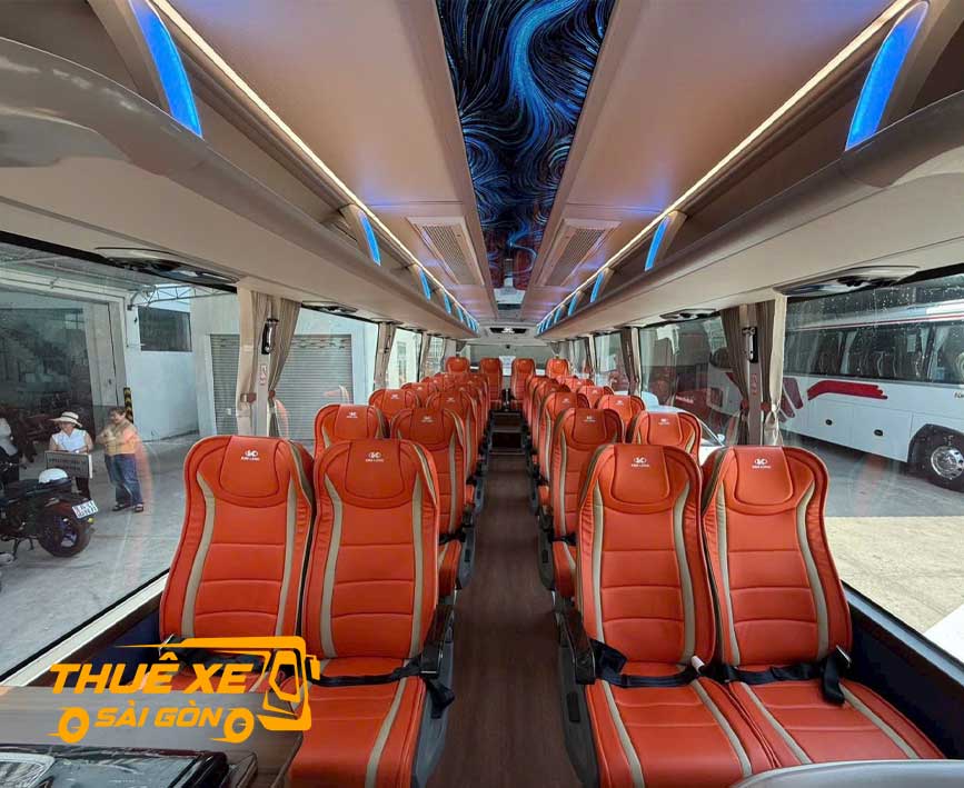 Khoang xe sở hữu trần cao thông thoáng, kết hợp sàn chống trơn trượt và hệ thống tay vịn chắc chắn, đảm bảo an toàn cho mọi đối tượng hành khách. Giá để hành lý được bố trí gọn gàng, thuận tiện sử dụng, giúp không gian luôn ngăn nắp, rộng rãi và dễ di chuyển trong suốt chuyến đi.